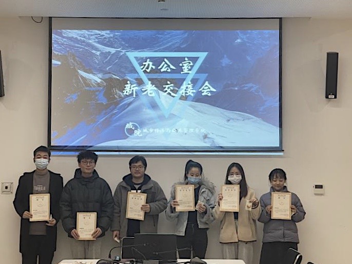 首先,各成员进行了简要自我介绍及述职,由于大家在自己的岗位上尽职尽责,表现出色,老师及两位负责人都一致肯定了老生成员过去一年的努力付出,并在会上颁发了证书以及纪念品。