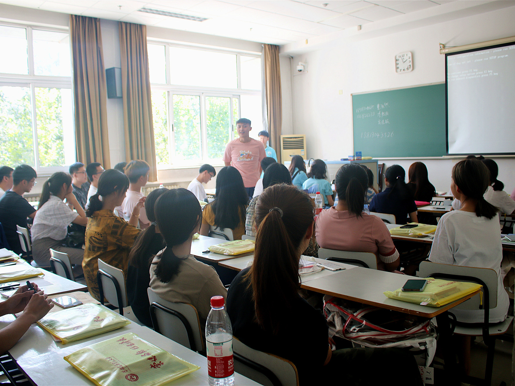 与此同时,各班在博学楼教室召开新生第一次班会,各班班主任、班导生与新生齐聚一堂,在一轮自我介绍之后,同学们之间也有了初步的认识。最后同学们在班导生的指导下完成了新生入学必备的各项手续。