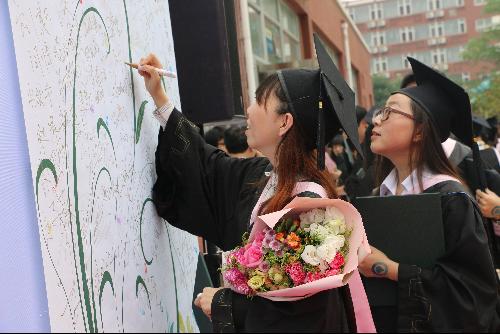 本次毕业典礼为2017届本科毕业生的大学生活画上了一个完美的句号。很多学长学姐都为学弟学妹们留下了他们的美好嘱托与寄语,他们表示在首经贸的四年里是幸运的,要好好珍惜当下的时间,去做自己想做的事。