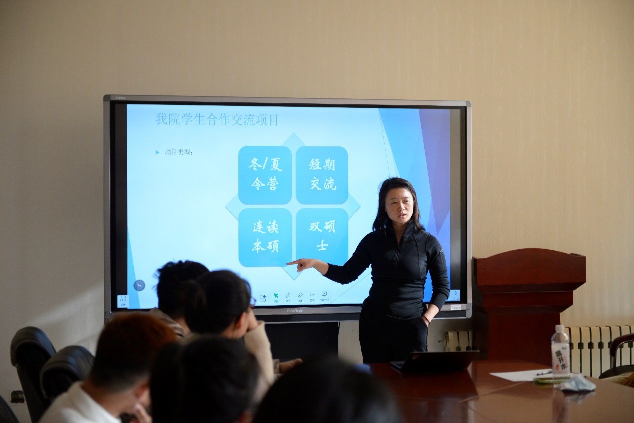 接下来,潘娜讲述了在美国留学时的经历,并介绍了学校国际交流的平台和学院学生国际交流项目。学院学生国际交流项目形式丰富,主要有冬夏令营、短期交流、本硕连读和双硕士等。潘娜详细说明了美国密苏里州立大学、罗格斯·新泽西州立大学、亚利桑那州立大学、新墨西哥州立大学、克利夫兰州立大学,以及法国电信大学为学院学生提供的各交流项目的特点,为同学们选择交流项目提供了有益指导。