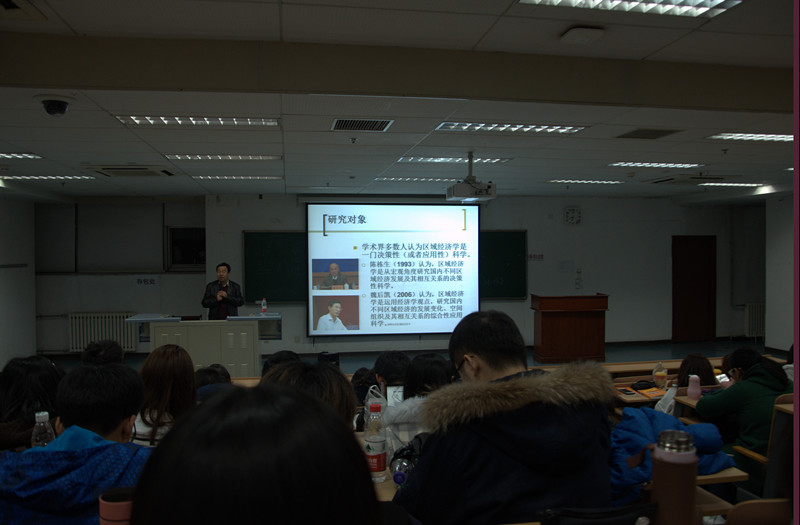 活动开始,城市经济与公共管理学院安树伟教授为同学们做了《如何认识区域经济学》的讲座,主要包括区域经济学的研究对象、区域经济学的学科特点以及首都经济贸易大学的区域经济学这三方面内容。面对大一新生,安树伟教授结合自己多年的研究通过生动的例子,例如21世纪初的我国划分的东中西和东北“四大区域”、晋陕两省交界处山西临县与陕西佳县的“一桥双名”、京津冀的空气污染、北京市地铁票价的调整等,来阐述区域经济学的研究内容和学科特点,让同学们在轻松中加深了对区域经济学专业的了解。