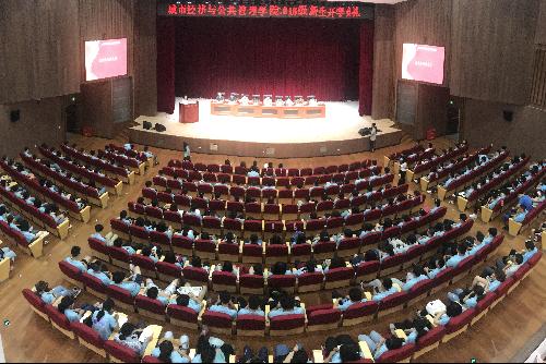 2018年9月3日上午九点,城市经济与公共管理学院2018级新生开学典礼在博远楼琢玉讲堂隆重举行。院长张国山、副院长彭文英、学院党委副书记杨曦,各系系主任,分团委书记、专职辅导员、新生班主任,以及全体二百八十余名本、硕、博新生出席典礼。典礼由杨曦主持。