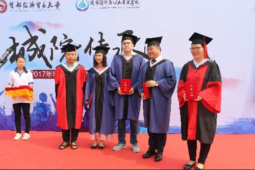 2017年6月30日上午,在学校毕业典礼结束后,城市经济与公共管理学院在城市运行与应急管理中心门前广场举行了以“城院·传承”为主题的2017届研究生毕业典礼暨学位授予仪式。院长张国山、党委书记王德起、副院长张杰、副院长彭文英、党委副书记杨曦出席毕业典礼。全体硕士、博士毕业生共同参加了活动。典礼由杨曦主持。