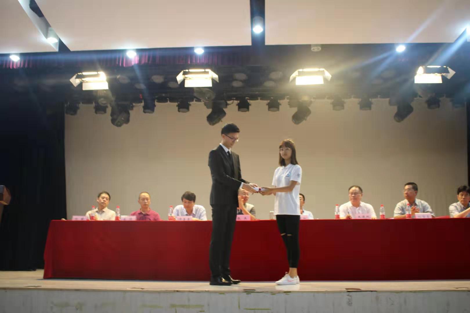 接着,在校生代表刘骥发言。他分享了“目标导向”、“关联性”、“生活”三个词语,希望新生们虚心求学,勤于思考,努力提高个人能力,保持对于生活的热情,在大学中度过一段有意义的青春。言毕,他代表全体在校生向新生代表赠送了一份由全院师生精心挑选的,有助于新生成长的书单,象征着城院学子学识的薪火相传,寄托着全体在校生对于新同学的美好希望。