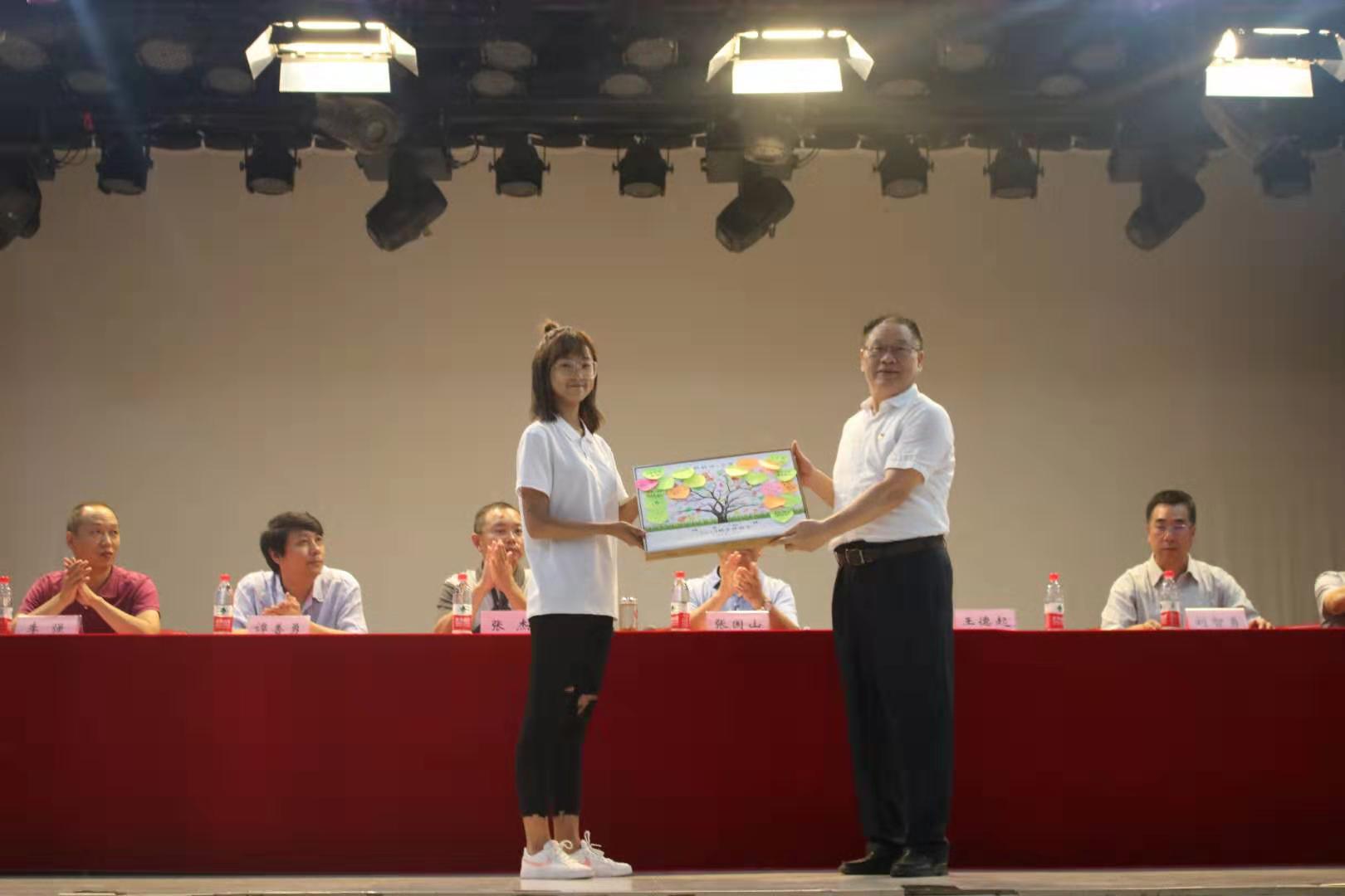 2019级公共管理5班本科生袁宝接受赠书后,代表新生做了精彩的发言。她表达了初入大学校园的喜悦之情以及对大学生活的美好向往,也代表新生们表达了勇于人生理想的决心和不负青春韶华的信心。接着代表全体新生向学院赠送了他们精心制作的“城长知树”。用指纹和心愿卡描绘而成的“城长知树”,象征着所有新生心手相连,在城院的这片沃土上用心成长,努力结出知识的果实。学院党委书记王德起代表学院接受了新生的这份美好的心意。