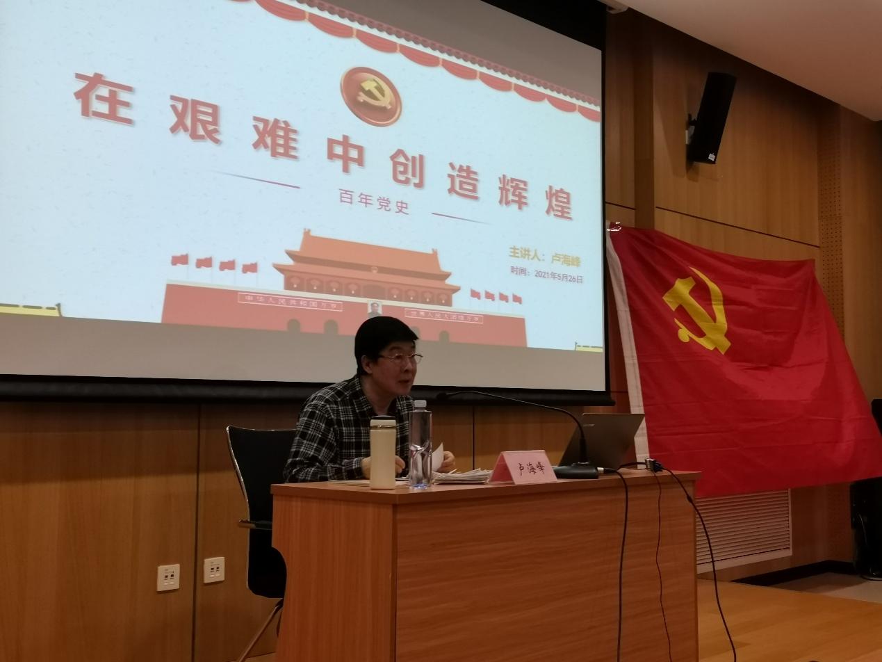 为深化落实习近平总书记在党史学习教育动员大会强调的关于“加强党史教育,锤炼党性修养”的相关工作,值此中国共产党成立100周年华诞来临之际,城市经济与公共管理学院本科生学生党支部,于2021年5月26日邀请到我校马克思主义学院退休教授、首都经济贸易大学老教育工作者协会常委、全国优秀教师卢海峰老师进行了《在艰难中创造辉煌》百年党史主题党课的讲演,本次讲座由我院本科生党支部全体党员参加,一起追忆我党自成立至今走过的峥嵘岁月,感受革命先烈们坚定意志和优秀品格,进一步锤炼和提高自身党性修养。