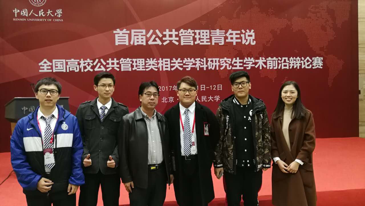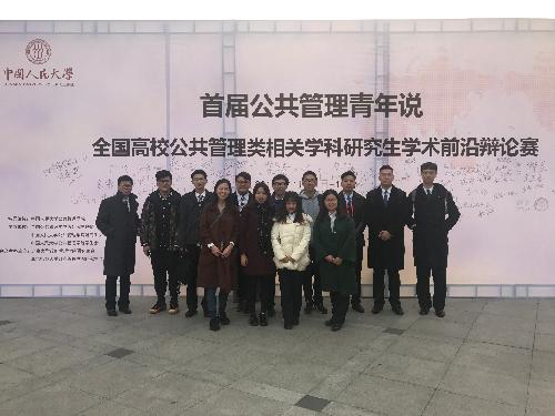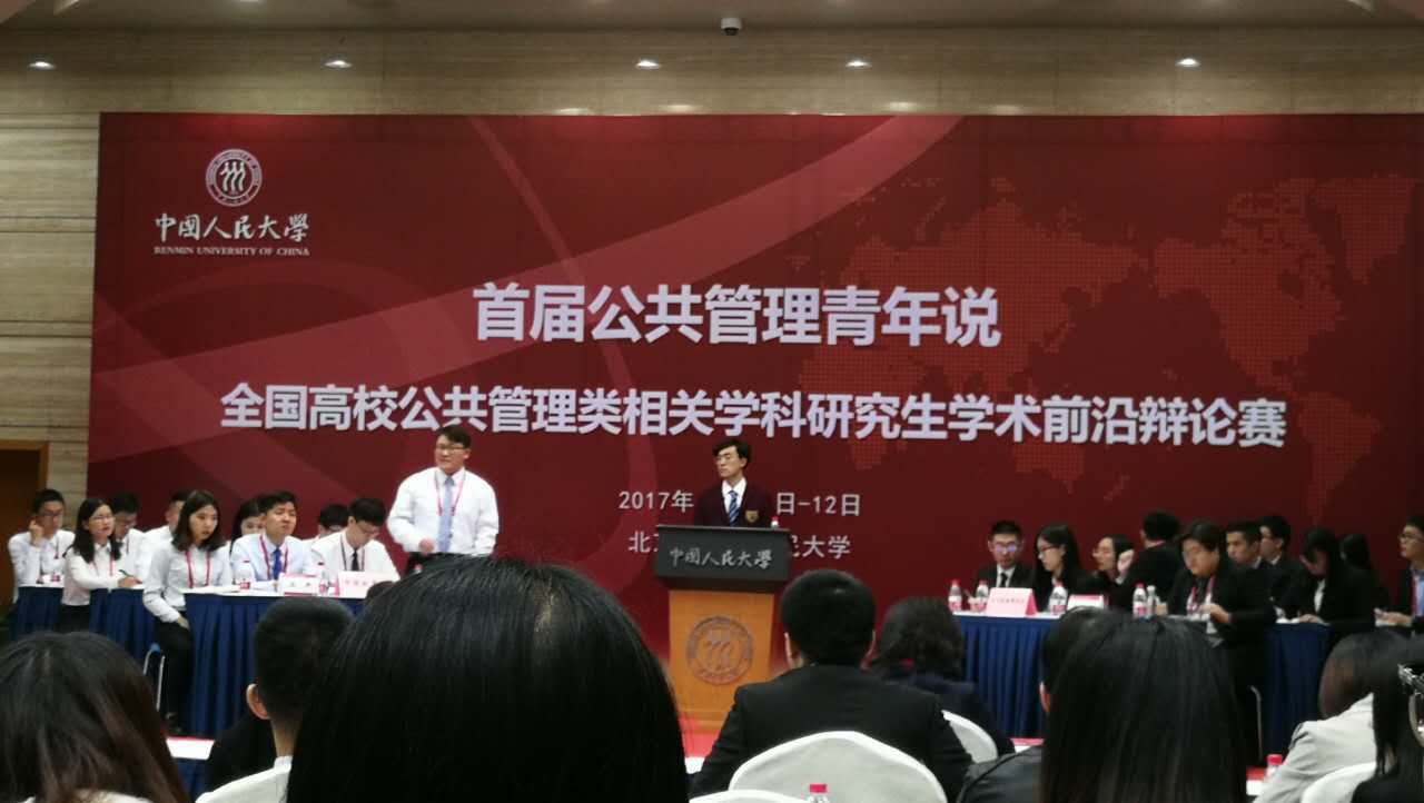 2017年11月12日,首届公共管理青年说——全国高校研究生公共管理学科学术前沿辩论赛总决赛在中国人民大学世纪馆北大厅会场举行。决赛由中国人民大学公共管理学院院长杨开峰教授和北京大学郁俊莉教授以及北京师范大学孙宇教授担任比赛评委。我校代表队与北京大学、华中科技大学、吉林大学组成的联队在与南京大学、西北工业大学、山东大学、东南大学、天津大学、四川大学、中央财经大学等全国知名大学的激烈角逐中,一路从晋级赛闯到决赛,最终荣获全国亚军。