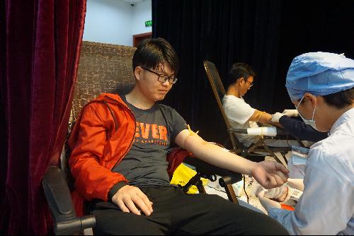 生命有时是绿色的,有时却是殷红,浇灌生命之树,血比水浓。2018年4月26日,城市学院分团委志愿者工作部部长及干事组织大家开展无偿献血活动。他们是来自首都经济贸易大学城市学院的献血的同学们。早上7:15来自城市学院的三十多名志愿献血同学在指定教室博学楼107集合完毕并认真填写献血登记表,志愿者们统一为同学们发放早餐,保证营养供给。