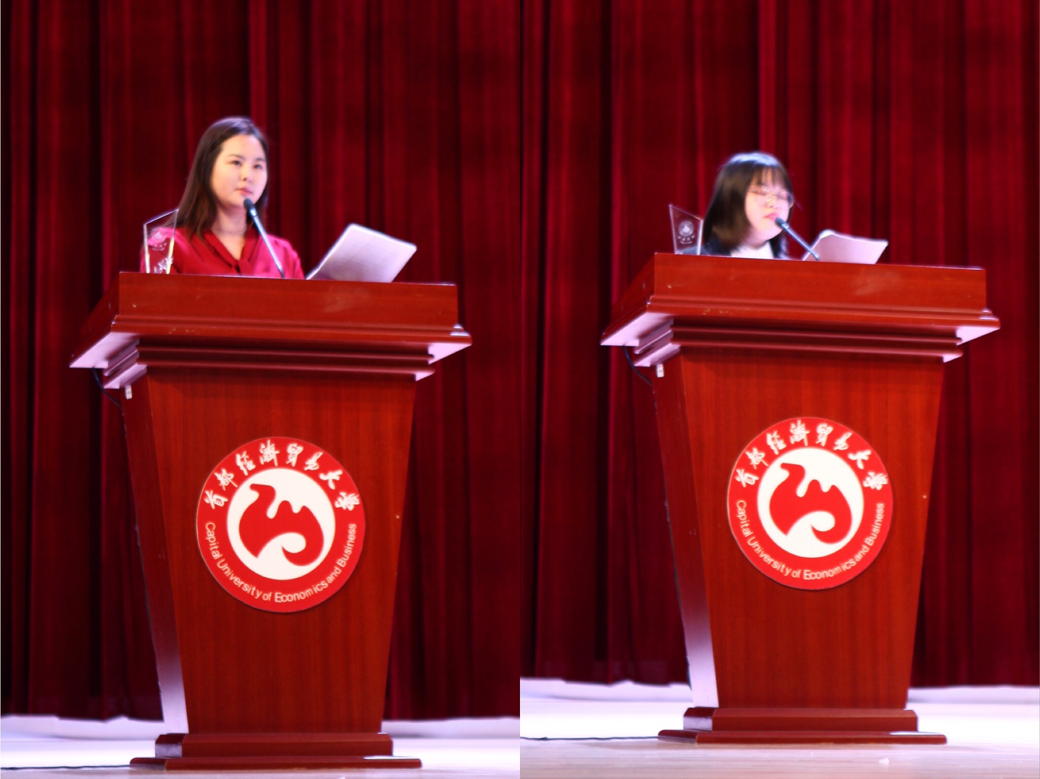 2018-2019学年,城市学院综合类奖学金中获得国家奖学金5人、国家励志奖学金9人;获得各类荣誉称号46人;单项奖学金中,获得学习优秀奖学金112人,研究生学业优秀奖学金105人,社会工作奖学金32人,科研创新奖学金7人,文体竞赛奖学金3人;社会赞助类奖学金中获得三菱东京银行奖学金1人;18级公共管理2班被评为校级“先进班集体”, 18级公共管理3班、16级行政管理班被评为校级“优良学风班”。同时获得表彰的还有我院参加七十周年国庆阅兵活动的66人。宣读评审结束后,刘文东老师、杨曦老师为获奖同学颁奖。