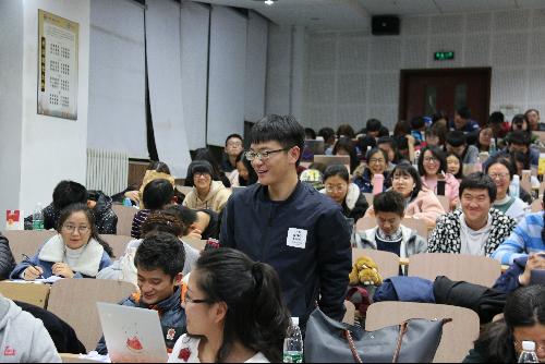 2013级城市经济管理专业的杨明明同学是2017届北京市优秀毕业生,他以全院第一名的成绩保研到北京师范大学。今天他从“学习生活 ”、“学生活动”、“保研之路”三个方面,将自己在城市经济管理专业所学到的知识和在北师大研究生新生活中的感悟分享给在座同学。杨明明同学对城市经济管理专业的热爱、对城市经济管理系各位老师的感恩和他充满正能量的语言,激起了在座同学们的阵阵热烈的掌声。