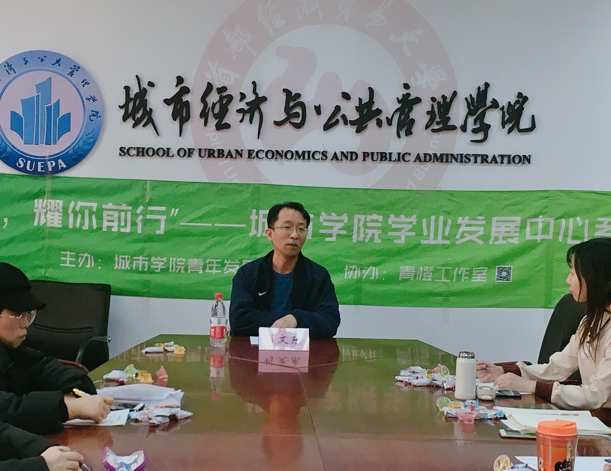 2019年11月29日下午,在博纳213会议室,城市学院学业发展中心举办“职场空间站”品牌工作坊之“选择职业,你该知道的那些事儿”活动。学院党委书记刘文东与所有通过线上报名成功的30名同学在博纳楼213会议室围绕“选择职业,你该知道的那些事儿”展开畅谈。