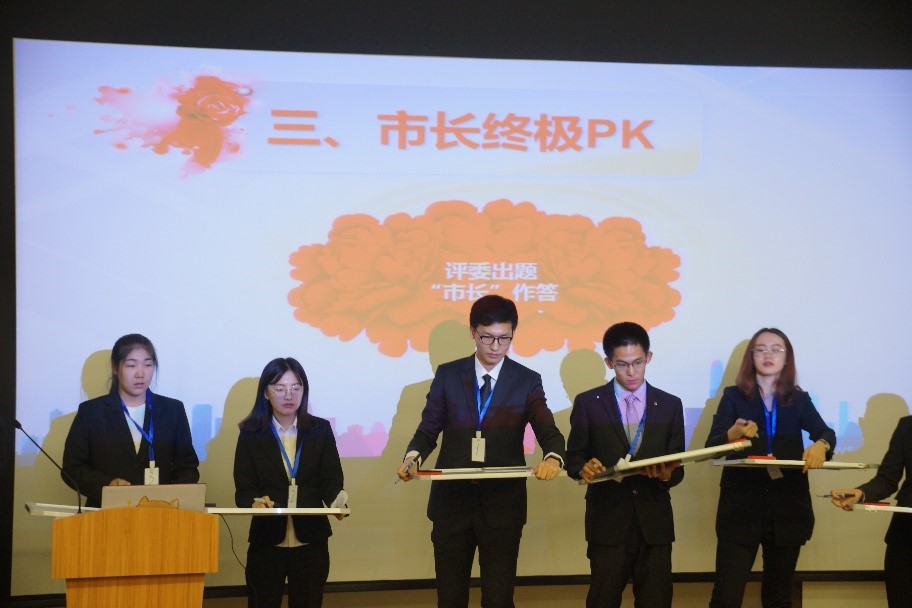 第三个环节为“市长终极PK”,这一环节是由评委出题,每一队的“市长”作答。“市长”在两分钟内将答案写在答题板上并做阐释。通过这种方式考察每个“市长”的临场应变能力、决策能力和专业素养。嘉宾和观众们不时为“市长”们的精彩表现报以热烈的掌声。