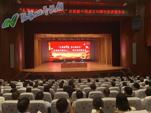 为进一步深入宣传贯彻落实习近平新时代中国特色社会主义思想和党的十九大精神,展现新中国成立70年来我国取得的辉煌成就,宣传河北省70年来经济社会发展的生动实践,2019年9月6日,由中共河北省委讲师团主办、中共张家口市委宣传部、中共张家口市委讲师团、中共张北县委宣传部承办的主题为“礼赞新中国 奋斗新时代”宣讲报告会第二场主报告会在张家口市张北县成龙大厦演播厅举行。