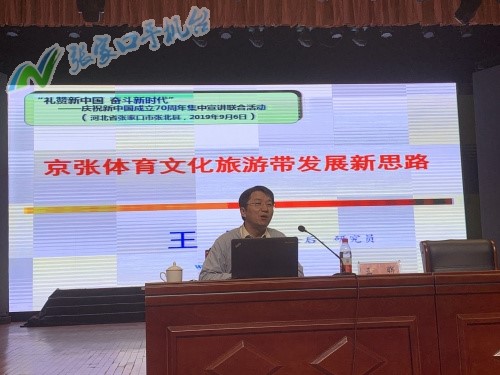 首都经济贸易大学副教授王晖宣讲了主题为“京张体育文化旅游带发展新思路”的报告