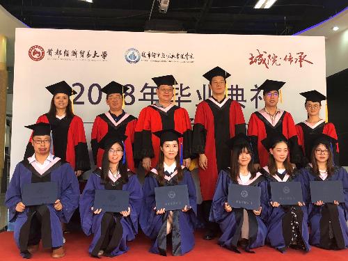 2018年7月6日上午,在首都经济贸易大学校级毕业典礼结束后,城市经济与公共管理学院在城市运行与应急管理实验中心门前广场隆重举行2018届“城院·传承”研究生毕业典礼暨学位授予仪式。学院院长张国山、党委书记王德起、副院长张杰、副院长彭文英、党委副书记杨曦,MPA教育中心主任刘智勇、行政管理系主任潘娜与全体研究生毕业生共同出席典礼,典礼由杨曦主持。