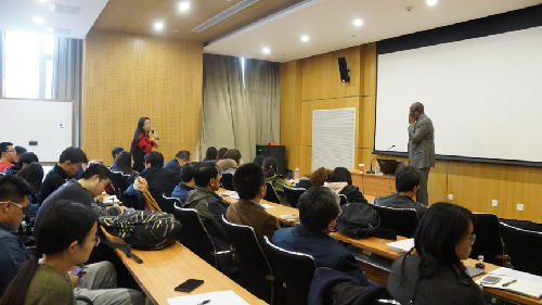 下午15点30分,罗兰·安格林院长与鲍勃·格列森副院长在博远楼一号学术报告厅做交流讲座,城市学院王德起书记担任主持人。首先,王德起书记对两位院长的来访表示热烈的欢迎,并介绍了两位院长的学术背景及成就。