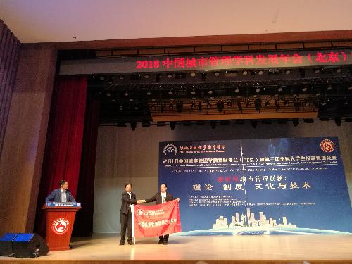 2018年10月13日,2018中国城市管理学科发展年会在我校博远楼琢玉讲堂成功召开。年会由中国区域科学协会城市管理专业委员会主办,我校城市经济与公共管理学院承办。本次年会以“新时代城市管理创新:理论、制度、文化与技术”为主题。 年会分为开幕式、主旨报告、分论坛、闭幕式等环节。开幕式由我校城市经济与公共管理学院党委书记、王德起教授主持,我校校长付志峰教授、教育部公共管理教育指导委员会主任娄成武教授、北京市城市管理委员会党组书记孙新军主任、中国区域科学协会城市管理专业委员会主任陆军...
