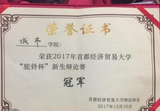2017年12月10日,首都经济贸易大学2017级“驼铃杯”新生辩论赛的最终决赛在博学楼学术报告厅落下帷幕。决赛双方分别是城市经济与公共管理学院辩论队和劳动经济学院辩论队。双方就“人工智能会/不会终结人类”这一辩题进行了深入讨论。城市学院参加决赛的四位辩手分别是:裴卓凡、苏童、李燕宇和尹诗淇。最终城市学院辩论队的四位辩手凭借充实的准备与良好的临场发挥赢得了本次“驼铃杯”的冠军,三辩李燕宇同学荣获本场辩论赛“最佳辩手”称号。 “大概是人生中没有遗憾的一个月了,感谢所有的泪与笑...