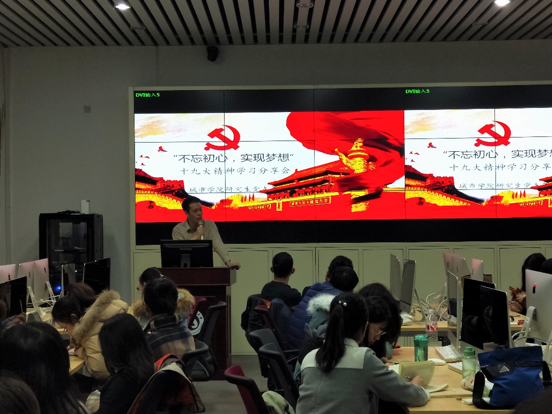 2017-12-082017年12月4日星期一18:30,城市经济与公共管理学院研究生学生党支部在城市学院应急实验室112室为深入学习贯彻党的十九大精神,开展“不忘初心,实现梦想”的党的十九大精神学习交流会。参与交流分享活动的有各班党员、预备党员及积极分子。共有10名入党积极分子及发展对象对十九大精神的理解或自己关注的某些具体方面进行阐述理解分享。交流会由研究生党支部书记陆辉老师主持。 首先,李帅、曹宁泽、刘丹丹几位入党积极分子对十九大报告进行了全面而深入的解读,中国共产党第十九次全国代表大会,是一次具有...