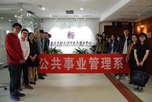 2017年4月18日下午,2014级公共事业管理本科班和行政管理专业的4名硕士研究生在系主任冯浩老师和徐正老师的带领下,前往北京市社会组织发展服务中心参观学习。此次活动的目的是让大家对现实中的社会组织有更好的了解,实践与理论相结合,以便于更好的学习专业知识,并为接下来6月份的专业实习做准备。 图1 师生与中心工作人员合影 北京市社会组织发展服务中心(简称中心)是由北京市民政局举办,委托北京市协作者社会工作发展中心(简称北京协作者)运营的市级支持平台,为解决社会...
