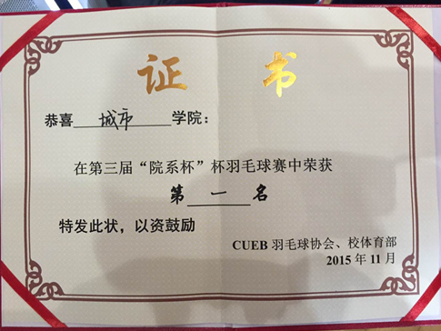 11月26日,首都经济贸易大学第三届“院系杯”羽毛球赛决赛在校乒羽馆举行。在长达四天的比赛中,城市经济与公共管理学院突出重围,连创佳绩,获得了本次羽毛球比赛的团体冠军。 本次团体赛分为男双、女双、混双比赛。前期比赛采取淘汰制,最终城市经济与公共管理学院、经济学院、统计学院与工商管理学院四支代表队晋级并展开冠军争夺循环赛,整个赛程精彩连连,看点颇多。 城市院男双队员,在本次比赛中表现出色。首轮是城市学院对战经统计学院,城院张宁与李帅同学搭档在比赛中获胜,赢得男双开局胜利,随后的混双和...