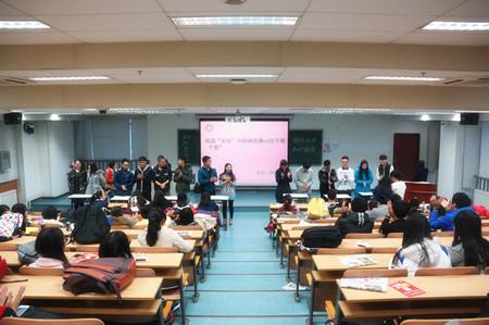 2015-12-042015年12月2日星期三下午3:40,城市经济与公共管理学院在博学楼阶4举办了主题为“澎湃动力,知识强我——喜迎校庆知识竞赛”活动。城市经济与公共管理学院分团委书记张云雪、学生会主席及各部部长出席了本次活动。 首先,在比赛开始之前,张云雪讲话。她讲到,明年为学校60周年校庆,举办此次知识竞赛活动的意义在于加深同学们对学校光辉历史的了解,进一步提升了同学们的主人翁意识,树立 “爱校荣校”的责任感与使命感。张云雪老师向同学们表达了她对于此次活动的期待,并预祝活动取得圆满成功。 随后,比...