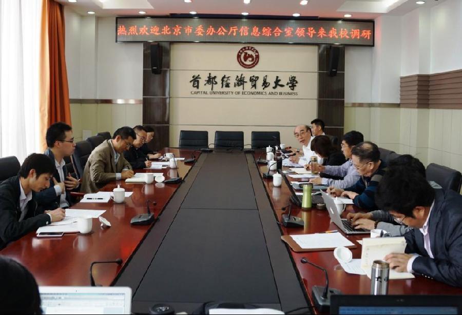 2014-05-215月13日上午,北京市委办公厅信息综合室周家雷主任一行5人来到我校城市经济与公共管理学院调研,就“提升北京城市管理水平”与13名教师代表进行交流座谈。会议由城市经济与公共管理学院段霞院长主持。 周家雷主任首先指出此次专题调研会是为了落实习近平总书记今年2月份对北京城市发展和管理工作提出的新要求,围绕“提升北京城市管理水平”提建议,出实招。继续教育学院书记、城市经济与公共管理学院张国山教授指出,应加大推进和落实城市监督执法机理,完善法制机制、回应机制、协调机制和执行机制四大机制。城市经济与...
