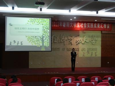2013-12-062013年11月27日下午16:30,由校团委主办的我校暑期社会实践团成果展示大会在学术报告厅举办,我院“绿色文明行·共创中国梦”社会实践团作为示范团队在全校同学面前进行了成果展示。参加展示的共有来自7个学院的7支团队。校团委副书记、各学院分团委书记及200余名学生参加了大会。 我院“绿色文明行·共创中国梦”社会实践团成果展示主讲人是我院分团委组织部部长李楚翘同学,她以PPT的形式向老师和同学进行此次暑期实践活动的展示。党的十八大报告第一次提出“推进绿色发展、循环发展、低碳发展”等理念,建设美丽...