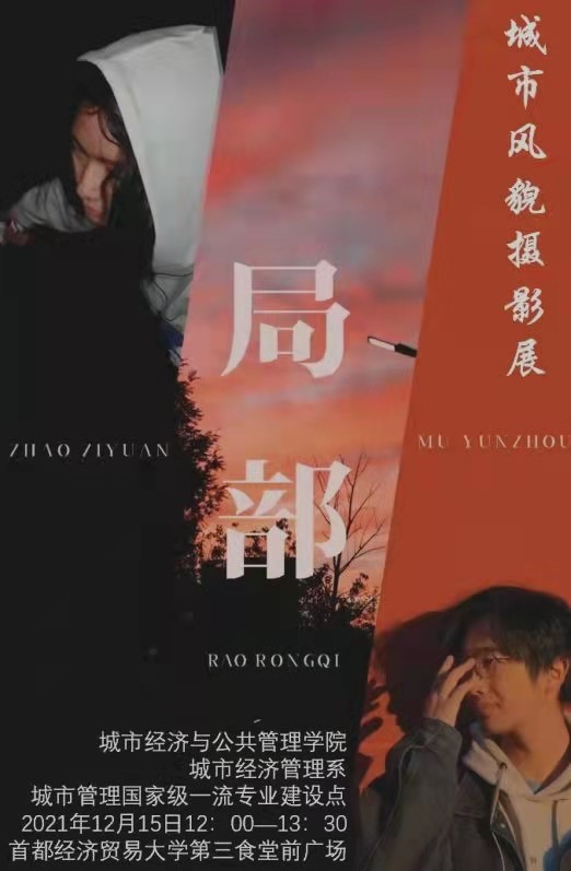 2021年12月15日星期三中午,城市风度——城市社会文化俱乐部于首都经济贸易大学第三食堂前广场举办了“局部”——城市风貌主题摄影展。本次活动采取线下展览的方式,在学院领导和城市经济管理系师生们的大力支持下成功举办。 本次展览的筹办同学有19级城市经济管理班赵紫源同学,20级城市经济管理班王正、木云舟、饶荣琦、李屹宗同学。本次活动还邀请了几位其他专业同学到场帮忙布置。 展览定义为“局部”。赵紫源同学解释道:“‘局部’出自陈丹青的一本名为《局部》的书,起名的想法来...