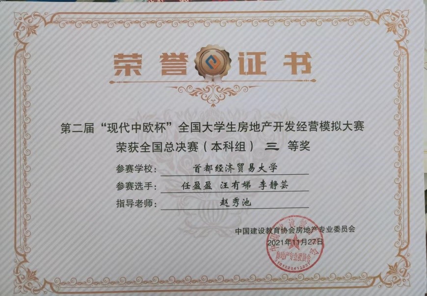 2021-12-222021年11月27日,由中国建设教育协会指导,中国建设教育协会房地产专业委员会主办,首都经济贸易大学、北京现代中欧软件开发有限公司联合承办的第二届“现代中欧杯”全国大学生房地产开发经营模拟大赛总决赛在云端成功举办。比赛旨在构建理论学习与实践对接的平台,加强与房地产专业相关院校和行业优秀企业的合作,整合教学与行业需求,深化和完善房地产实训仿真平台的建设,以3D仿真模拟技术为载体打造房地产综合实训、学习平台,实现学习、训练、职业技能提升、经营管理模拟和资源库建设的一站式服务,完成校...